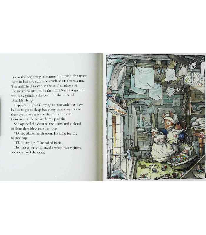 Step into the exquisite miniature world of the mice of Brambly Hedge in this beautiful new edition of the classic picture book. It was early summer in Brambly Hedge. Outside everything seemed quiet and peaceful, but inside the mill there was chaos. Poppy's new babies were crying, Dusty's mill was clattering and clouds of flour dust filled the air. This was no place to bring up a family. But what was to be done? The mice of Brambly Hedge came up with a plan in no time at all, and even Wilfred managed to keep it a secret from Poppy, so that she had the most wonderful surprise on the babies' Naming Day.